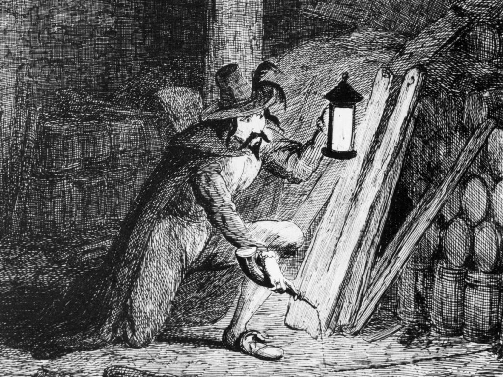 Guy Fawkes, a Catholic convert, was the most notorious conspirator of the 1605 “Gunpowder Plot” to blow up the Palace of Westminster. His actions contributed to growing anti-Catholic sentiment in Britain that eventually led to religious tests and the absolute prohibition of Catholics in government.